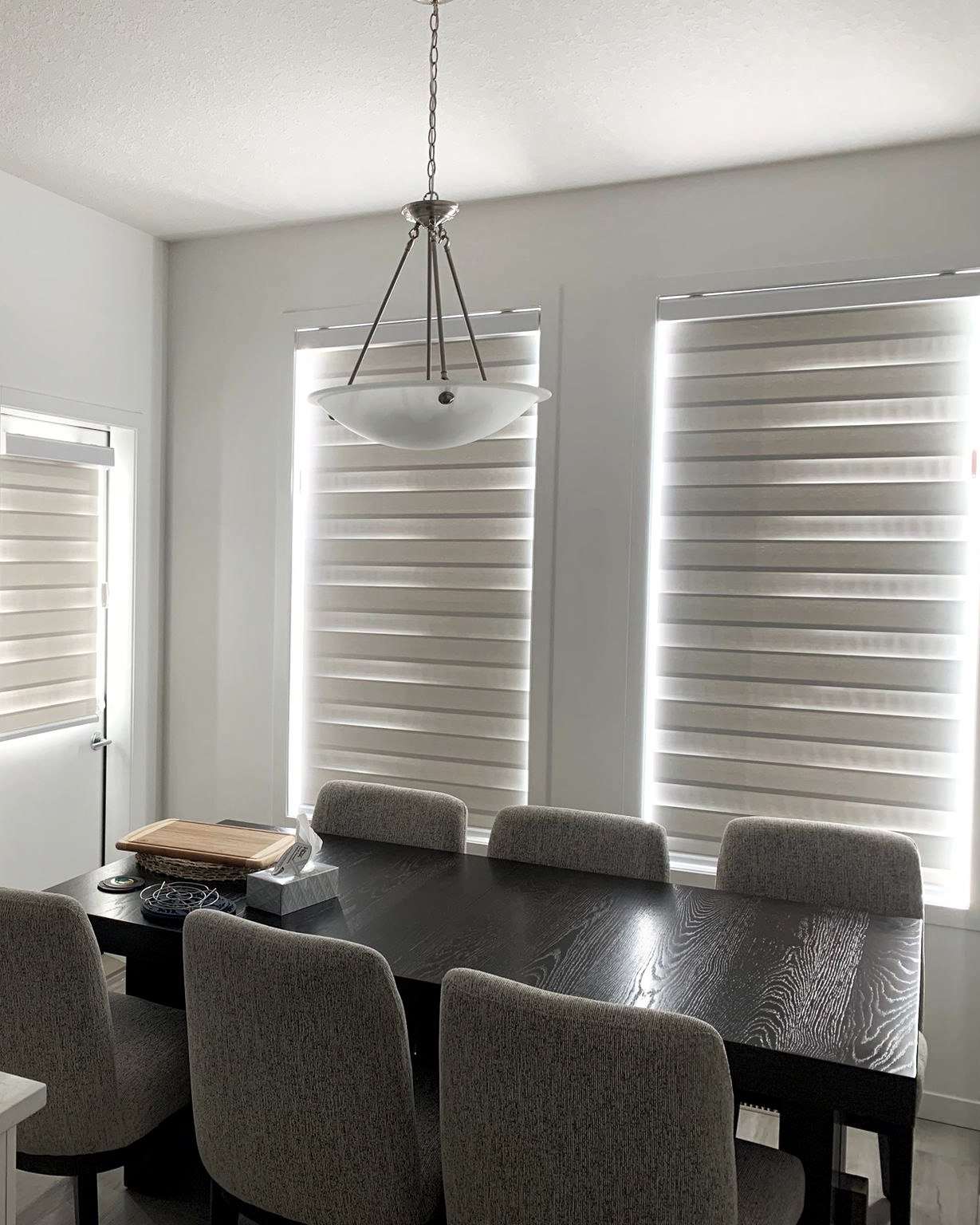Create a cozy and inviting atmosphere in your home with our high-quality living room Zebra blinds, carefully designed to add a touch of elegance and functionality to your space. The simple yet sophisticated elegance of zebra blinds in Calgary makes it the perfect shading product for any residential home or commercial office.